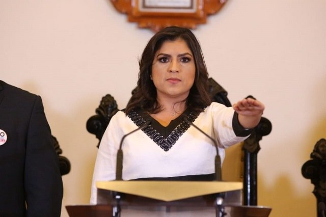 Claudia Rivera Vivanco asumió el cargo como presidenta municipal de Puebla para el periodo 2018-2021 en la primera hora de este 15 de octubre ante amigos y familiares que la ovacionaron al final con el coro de “es un honor estar con Obrador”.