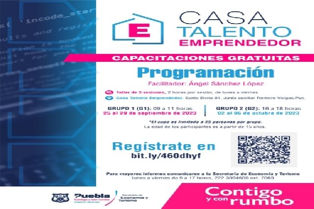 La iniciativa de Casa Talento Emprendedor se encuentra ubicada en calle Santa Elena No. 81, de la junta auxiliar Ignacio Romero Vargas, y estas jornadas de capacitación serán abiertas a todo público mayor de 15 años, habrá dos grupos por cada tema que se aborde, por lo que es importante registrarse con anticipación en el siguiente enlace: https://bit.ly/460dhyf