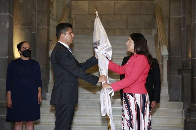Se llevó a cabo una ceremonia en el patio del Palacio Municipal, en donde se pudo observar la asistencia de Lourdes Rosales Rodríguez, titular de Seguridad Pública encargada de entregar la bandera a Claudia Rivera Vivanco, que hasta el día de ayer finalizó sus funciones como Presidenta Municipal.