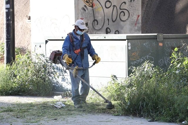 Momentos antes de iniciar con la limpieza señaló que los trabajos consistirán en la poda de 950 metros de pasto, el barrido de mil 200 metros de calle y banquetas, el retiro de 270 metros cuadrados de grafiti y de elementos como sillones, llantas y muebles, así como de pendones y escombro, entre otras acciones orientadas no solo a dejar bonita esta vialidad, sino también a mejorar la movilidad de autos y peatones.