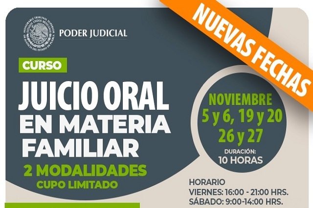 El Poder Judicial del Estado invita al foro jurídico poblano a participar en el curso “Juicio Oral en Materia Familiar”, desarrollado a fin de socializar el procedimiento y ventajas de esta nueva herramienta procesal.