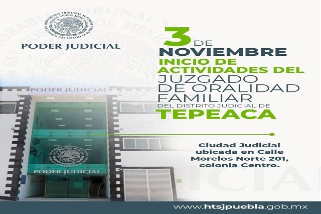 Los Juicios Orales Familiares tendrán lugar en Ciudad Judicial de Tepeaca, ubicada en la Calle Morelos Norte 201, colonia Centro.